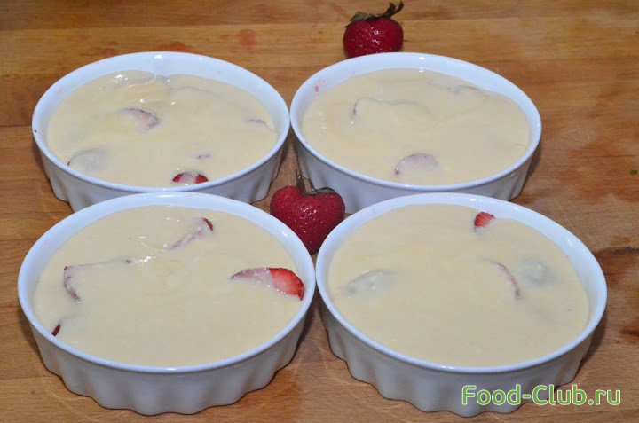5. Заливаем ягоды приготовленным тестом и ставим формы в предварительно разогретую духовку на 25-30 минут, пока запеканка не покроется золотистой корочкой.