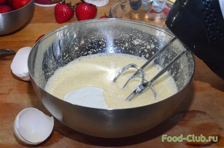 1. Взбиваем яйца с сахаром, чем лучше взбить яйца – тем пышнее будет запеканка.