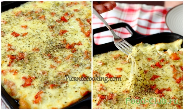 3. Запекайте минут 7-8, не больше. Не нужно ждать, пока сыр зарумянится, он должен просто расплавиться. Достаньте форм из духовки, посыпьте блюдо сушеным орегано и сразу подавайте к столу. Приятного аппетита!