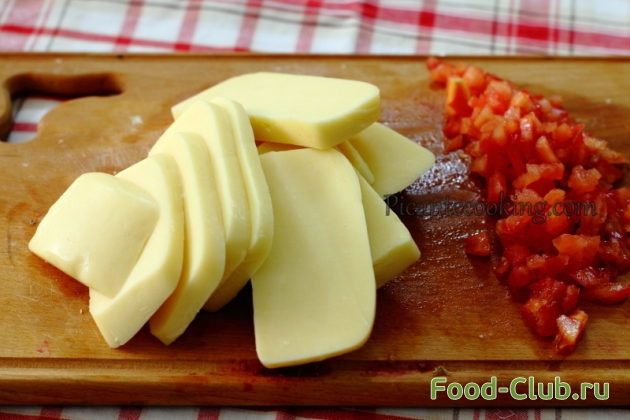 1. Для начала разогрейте духовку до 180 градусов. Помидоры очистите от кожуры и семечек и порежьте на мелкие кубички.