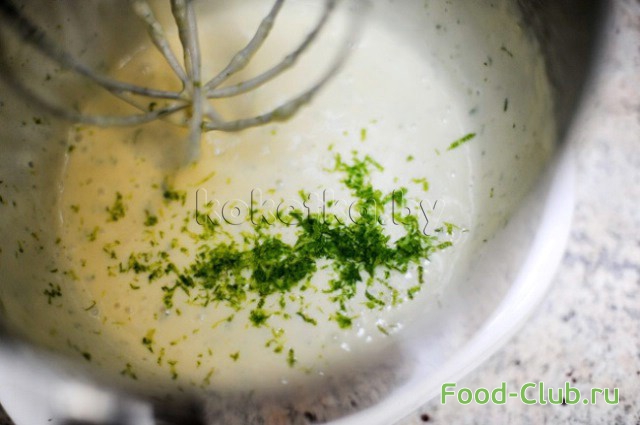 3. Приступаем к начинке, для этого перемешиваем цедру лайма, сок и желтки в глубокой миске. Добавляем сгущенку и перемешиваем массу до однородности.
