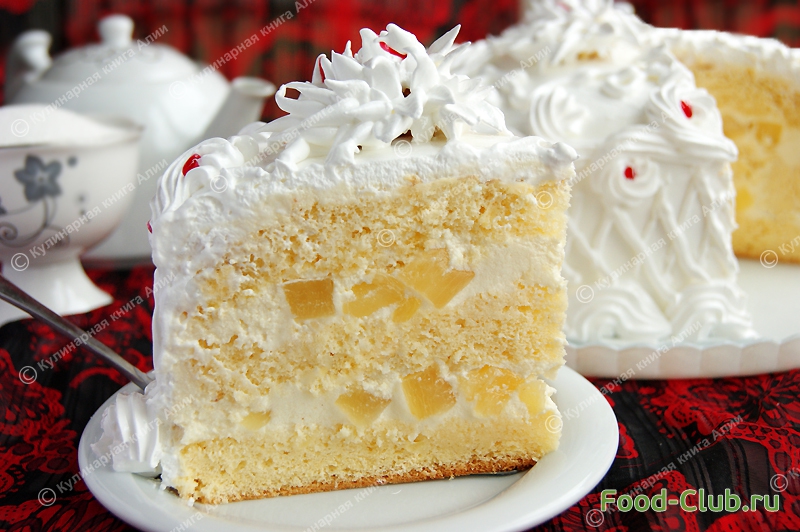Ссылка на источник рецепта: kulinariya123.blogspot.ru/2014/02/652-tort-ananasovyj.html