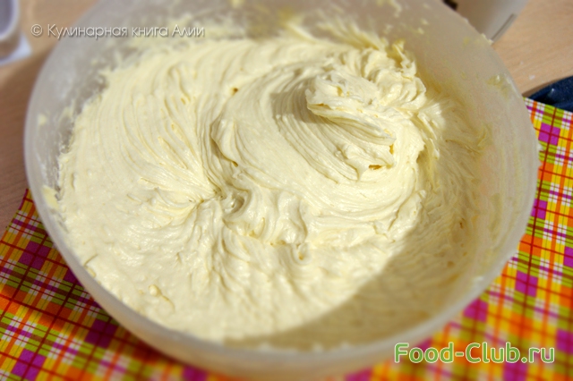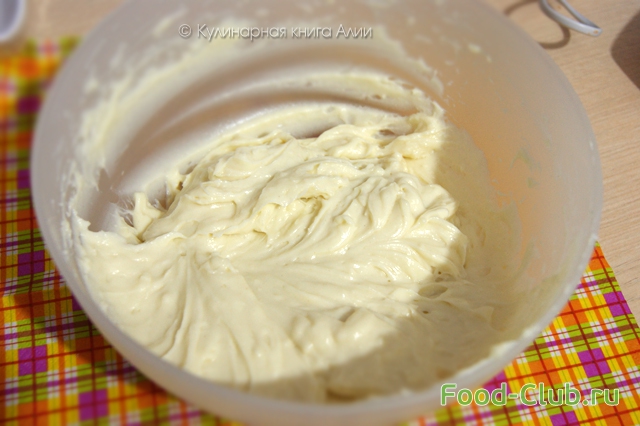 3. Когда крем остынет, взбейте его миксером. В отдельной посуде миксером взбейте масло, потом добавьте к нему сахарную пудру и ванилин. Снова хорошенько взбейте миксером. Смешайте молочную смесь с масляной. Еще раз тщательно взбейте миксером.