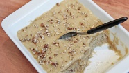 Теперь готовим крем. Тут все просто, всего лишь нужно тщательно взбить сметану с сахаром, до получения кремовой массы.