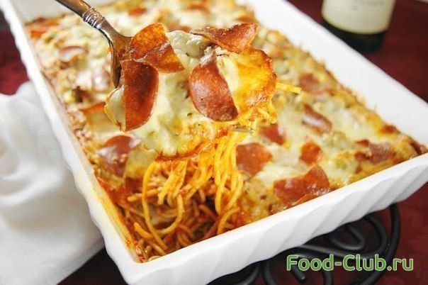 1. Забросьте макароны в кипящую подсоленную воду и варите до состояния альденте (на зубок). Затем отбросьте на дуршлаг, слейте воду и выложите макароны в блюдо для запекания.2. Порежьте два вида колбасы и обжарьте их на сковороде до легкой поджаристой корочки. Выложите половину колбасы на макароны.