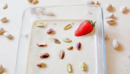 8. Измельченные орехи выкладываем поверх клубники. Украшаем десерт ягодкой. Ставим стаканы в холодильник до полного застывания. Летний десерт готов.