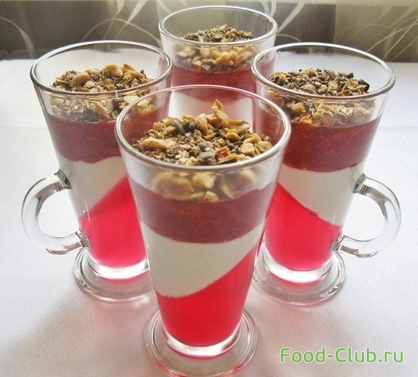 1. Пакетик готового желе заливаем кипятком. Полученную жидкость разливаем по высоким стаканам.