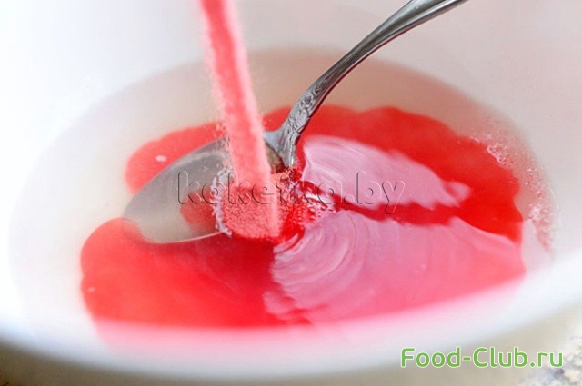 2. Засыпаем вишневое желе, хорошо перемешиваем.