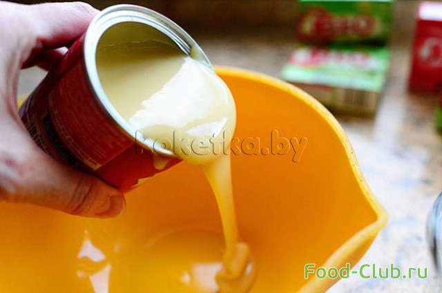 7. Добавляем сгущенное молоко, хорошо перемешиваем массу.