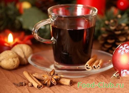 7. Как только истекли четыре часа, надо снять нашу кастрюлю с огня. И теперь уже готовый напиток разлить по бокалам. Именно в бокалы мы бросаем лавровый лист и по 1/2 от отложенных долек апельсина.