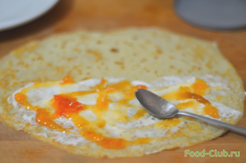6. Теперь намазываем блинчики любимой начинкой и наслаждаемся!