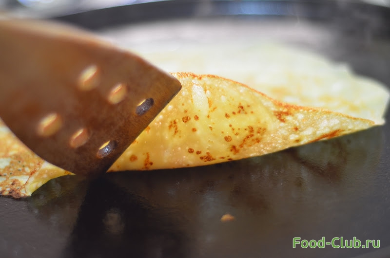 5. Теперь начинаем жарить блинчики. Все просто: обрызгиваем сковородку маслом и обжариваем блинчики с двух сторон.