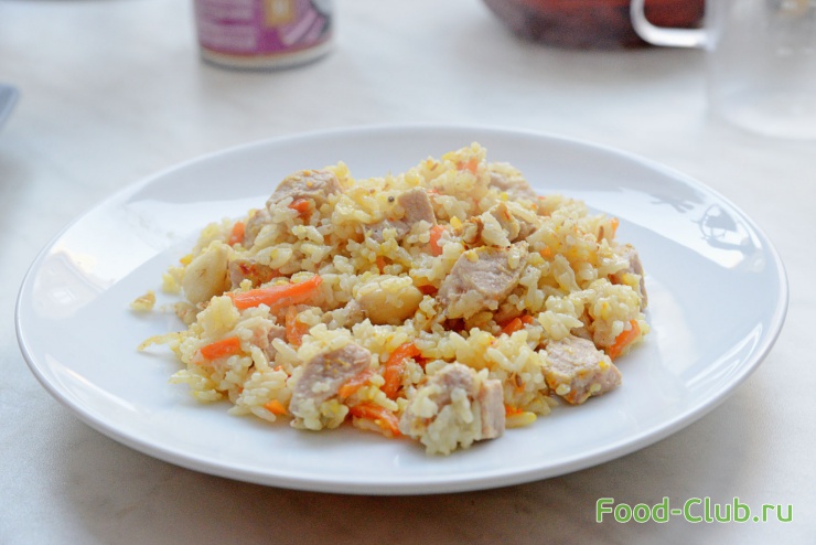 6. Перемешайте, воткните в рис чеснок (чтобы он был полностью в рисе) и поставьте на 10 минут в режим «Мультиповар».