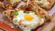 1. Обжарить на масле порезанный дольками помидор.2. Куриную грудку порезать на тоненькие кусочки. Можно использовать бекон ил колбасу.