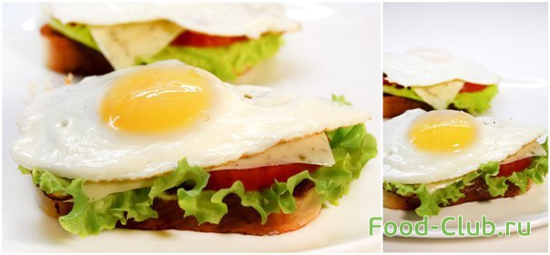 4. На небольшом количестве масла пожарьте яйца и выложите на каждый бутерброд по яичнице. Приятного аппетита!