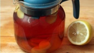 3) Кладем в чайник корицу, гвоздику и мяту, нарезанный лайм, цедру, имбирь, коричневый сахар и чай.