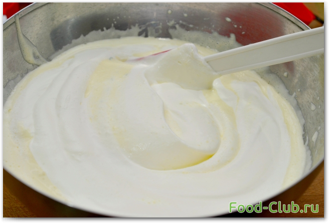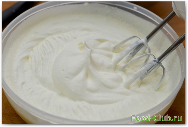 11. В отдельной посуде перемешиваем сливки до мягких пиков. Не стоит переусердствовать со взбиванием, иначе сливки превратятся в творог.