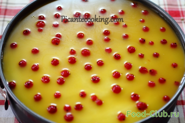 11. Ставим форму с чизкейком в холодильник на час. Когда желатин начнет схватываться выкладываем ягоды, и ставим в обратно в холодильник до полного застывания.