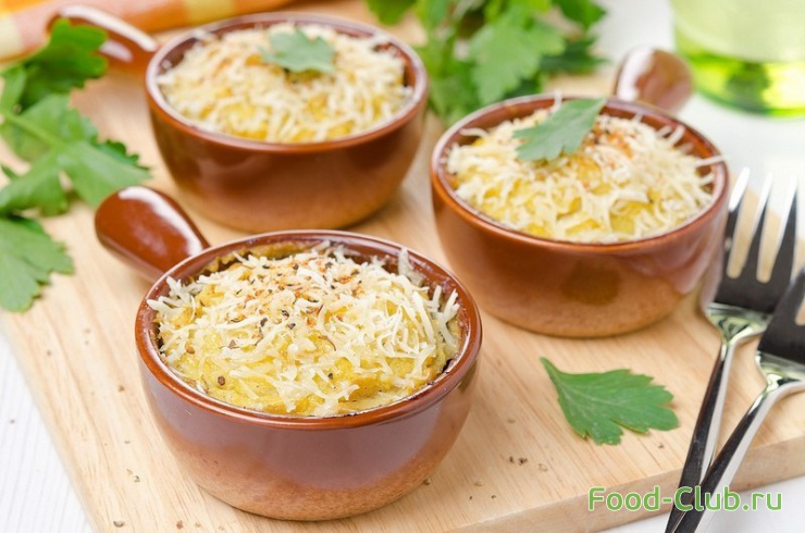 Разогрейте духовку. В порционные формочки разложите куриное филе, сверху- капустное пюре. Поставьте в духовку минут на 40-50, а затем достаньте, посыпьте тертым сыром и снова отправьте в духовку. Готовьте, пока сыр не покроется румяной корочкой. Приятного аппетита!
