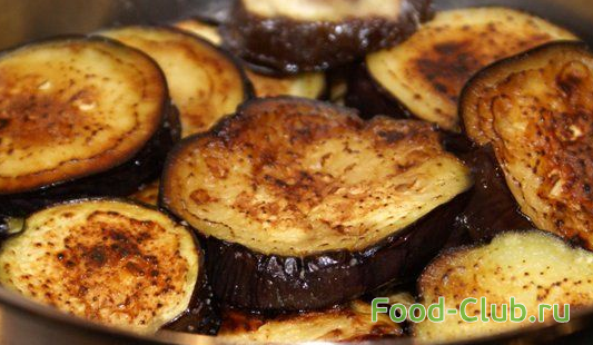 1. Баклажаны нарежьте на кружочки (можно еще очистить от кожицы).2. Обваляйте в муке и обжарьте на сковороде на растительном масле на умеренно среднем огне с двух сторон до золотистой корочки.
