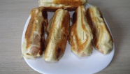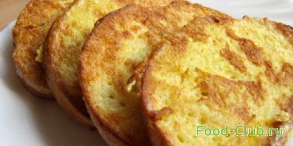 Раскаляем сковородку и смазываем ее сливочным маслом. Каждый ломтик батона обмакиваем в яичную смесь и обжариваем на сковороде с двух сторон до золотистого цвета. Для сладкоежек при подаче можно посыпать сахаром или сахарной пудрой.