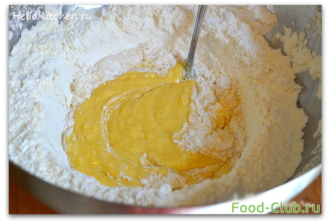 3. Перемешиваем, пока мука полностью не впитает яичную массу.