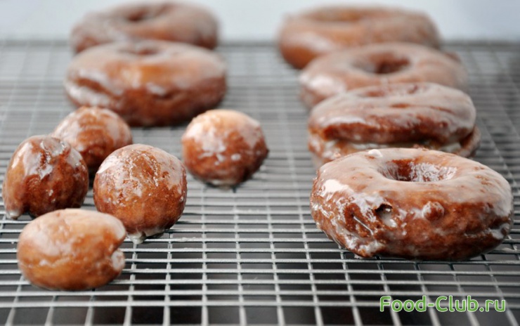 5. В сковороде разогрейте большое количество растительного масла (около 5 см высотой), обжарьте пончики в масле до образования золотисто-коричневого цвета. Обсушите на бумажных полотенцах.