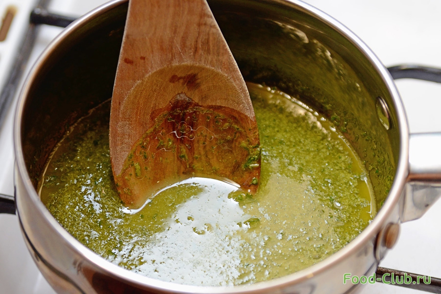 2. Затем залейте полученную смесь в кастрюльку и готовьте на слабом огне около 5 минут. Мешайте все время!