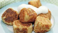 1. Для начала включите духовку разогреваться потому что процесс приготовления займет минимум времени. Возьмите большую миску и тщательно смешайте в ней столовую ложку с горкой муки, 1/2 чайной ложки соли и два вида перца. В отдельной миске хорошенько перемешайте йогурт, яйца и 2 столовых ложки муки. Мешайте, пока масса не станет однородным тестом.