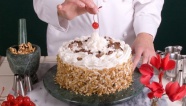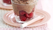 На дно стаканов выложите часть крема, затем измельченную черную смородину, посыпьте лепестки миндаля и кедровые орешки, затем снова крем и сверху снова черную смородину, миндаль и кедровые орешки.