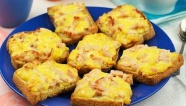 Накрываем второй половинкой багета и разрезаем поперек на 2 части.