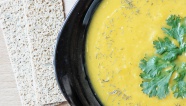 4. Теперь собираем суп: к лапше в бульоне добавляем заправку. Нарезаем креветки и тоже опускаем в кастрюльку. Добавляем еще немного зелени, соли и перца. Даем покипеть еще минутку и можно подавать к столу.