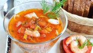 6. Верните измельченный суп в сковороду, доведите до слабого кипения, посолите, поперчите. Добавьте сливки или не жирную сметану, перемешайте до однородности, готовьте на слабом огне около 1 минуты и подавайте.