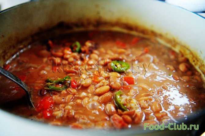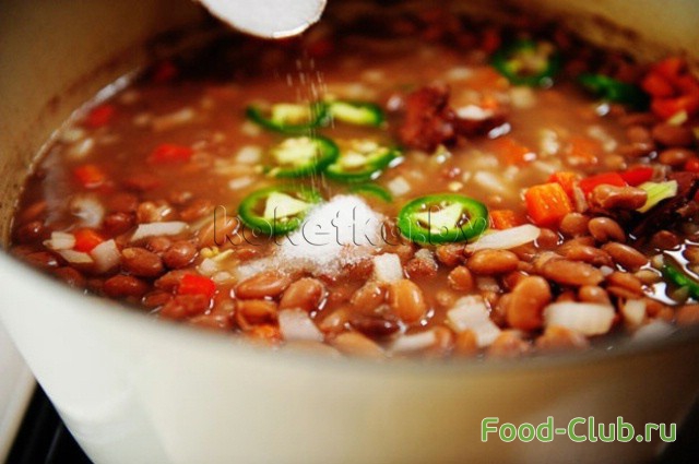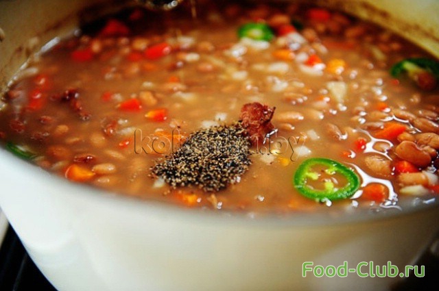 6. Добавляем приправы. Вновь накрываем крышкой и томим еще 20-30 минут, пока бобы полностью не приготовятся.