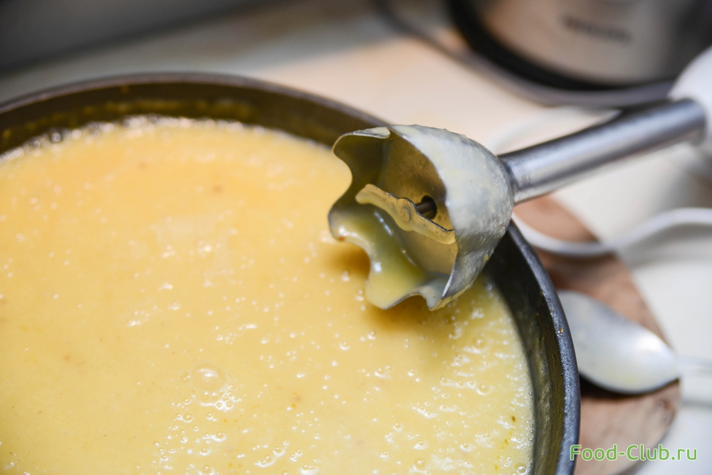 6. Смешайте картофель и остальным супом и измельчите его в блендере или через большое сито. Посолите и поперчите по необходимости.