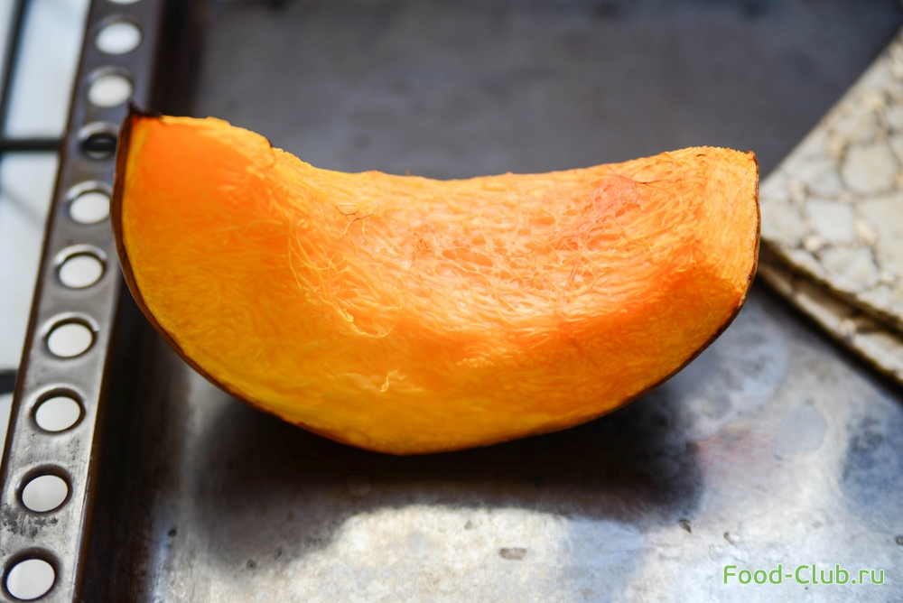 1. Тыкву выложите на противень и поставьте в духовку на 20-25 минут.