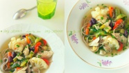 Овощную поджарку добавляем в суп. Добавляем все специи, кроме эстрагона и, помешивая, доводим до кипения. Варим 5-7 минут, потом добавляем эстрагон и снимаем с огня.