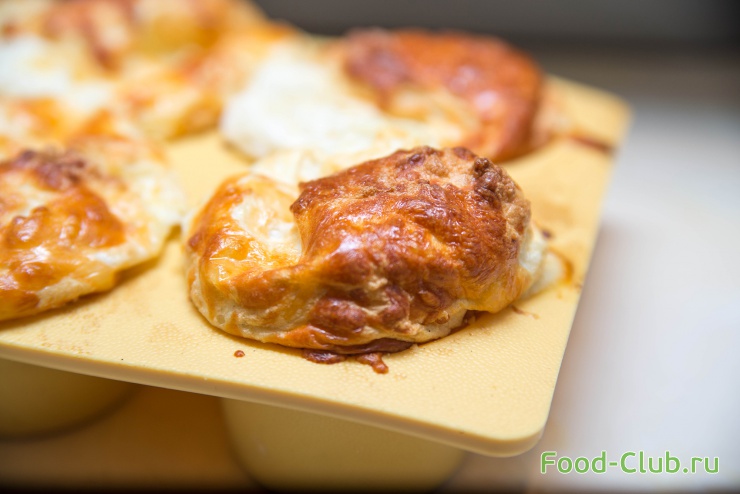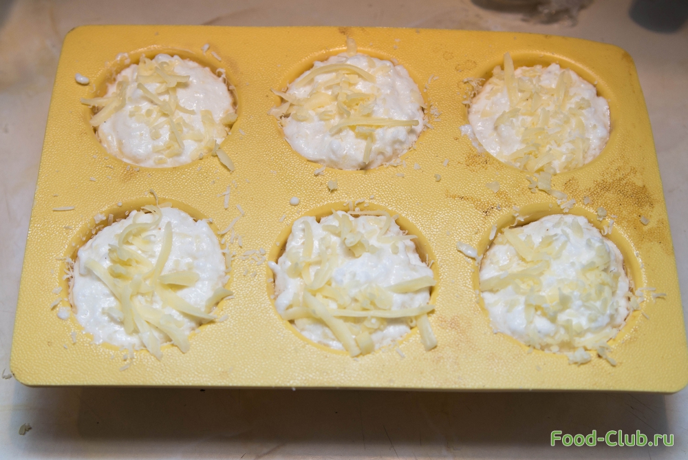 8. Выложите полученную смесь в формочки для суфле (не до конца, суфле поднимется в духовке). Сверху посыпьте оставшимся тертым сыром.