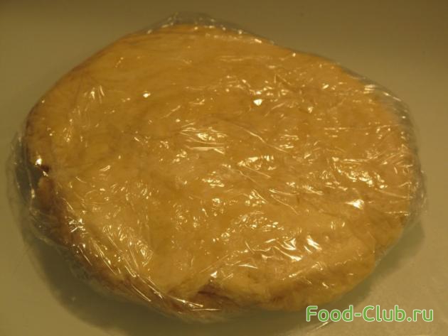 4. Заворачиваем тесто в пищевую пленку, придаем форму лепешки и кладем в холодильник на время (лучше всего на ночь).