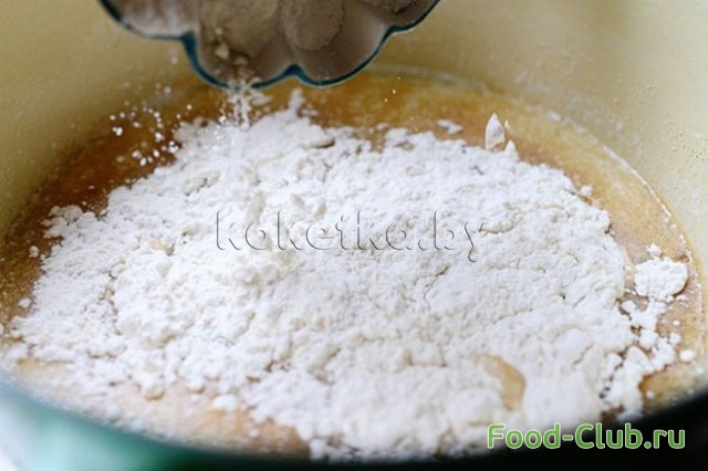 4. Засыпаем 4 стакана муки.