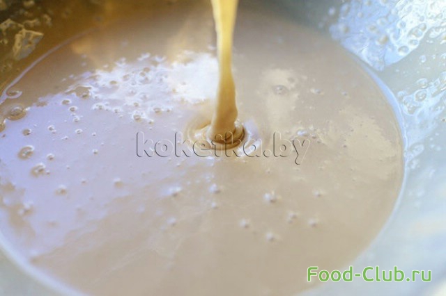 19. Готовим глазурь, для этого в отдельную емкость засыпаем сахар, соль, добавляем растопленное сливочное масло. Заливаем клиновым сиропом и молоком. Массу взбиваем венчиком. Глазурь должна получиться однородная.