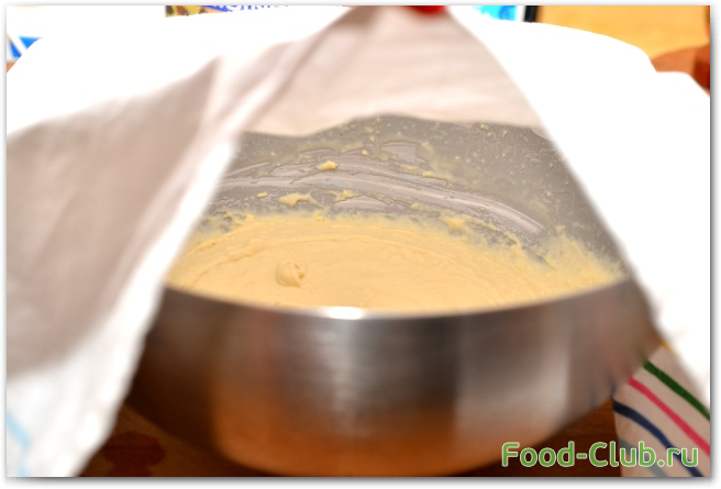 4. Миску накрываем полотенцем и ставим на час в теплое место.