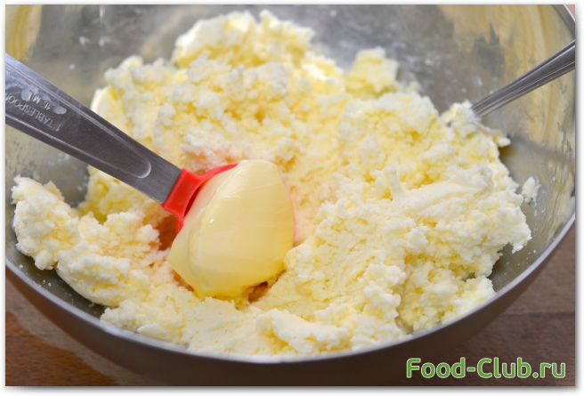 6. В начинку добавляем 1 ст. ложку мягкого сливочного масла, ванилин, сахарную пудру, все хорошо перемешиваем.