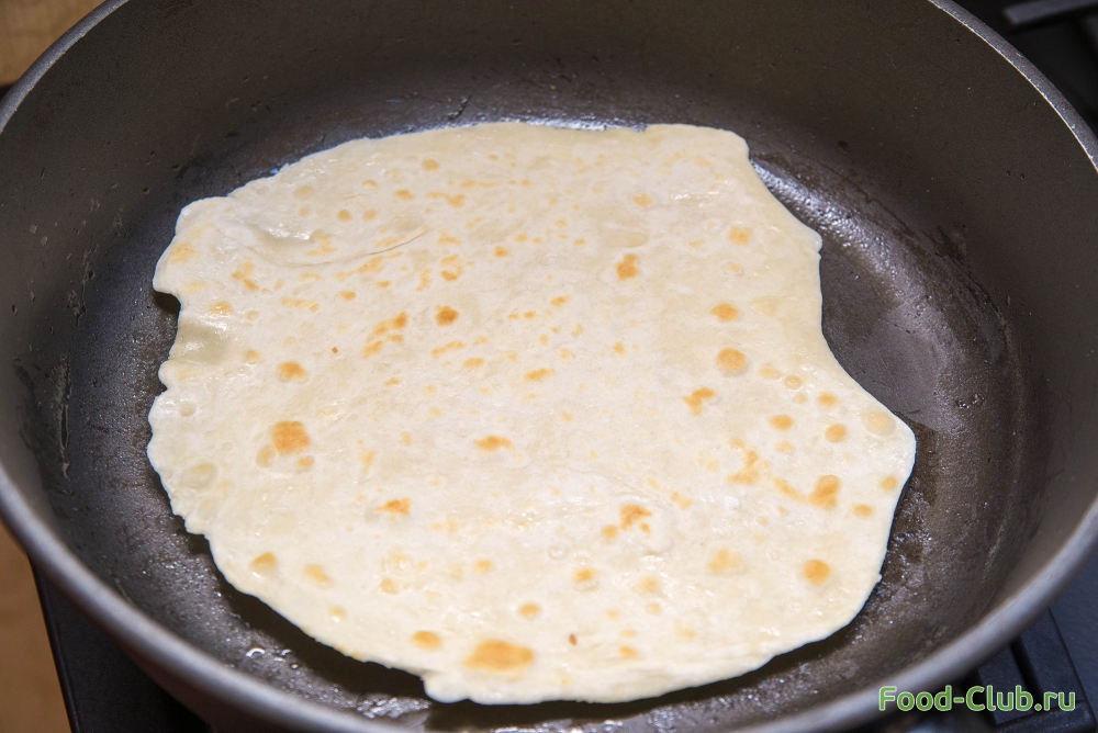 3. Разогрейте сковороду, смажьте маслом и положите лепешку на сковороду, готовьте на среднем огне 2 минуты, затем переверните и готовьте еще 2 минуты.