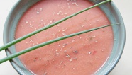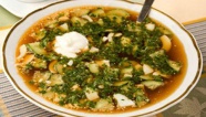 3. Зелень нарежьте, смешайте с огурцами. Добавьте чеснок с солью и перцем. Залейте холодный кефир. Можно еще добавить льда.