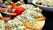 Эти бутерброды гарантированно обеспечат вам восторг гостей и близких. Готовятся мгновенно, а какая красота в итоге! К тому же, они очень вкусные!Сначала рыбу чистим от костей и кожи, нарезаем тонкими ломтиками. Каждый кусочек батона режем пополам поперек и смазываем сливочным маслом. На каждый кусочек батона кладем кусочек рыбы.