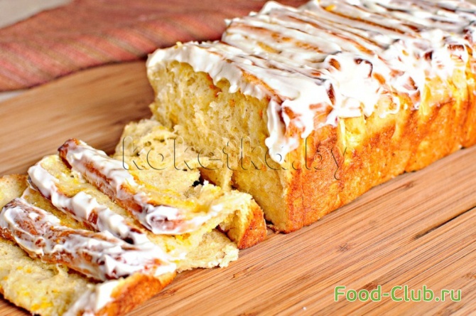 18. Ставим форму с тестом в предварительно разогретую духовку и выпекаем до готовности. Готовый кекс остужаем 10-15 минут. При помощи кисти намазываем кекс глазурью и подаем к столу.