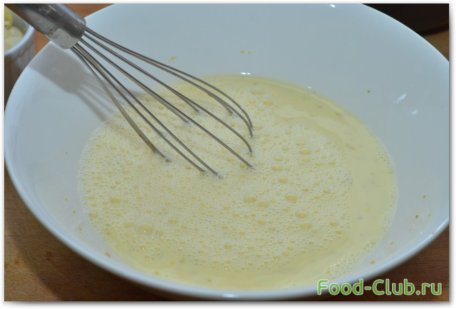 2. В отдельной миске взбиваем яйца, молоко и лимонную цедру.