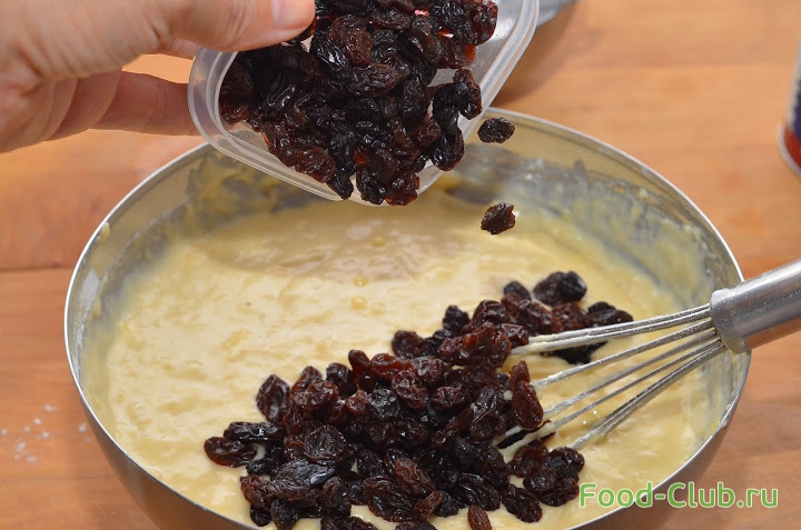 3. Добавьте изюм и аккуратно перемешайте, чтобы он не развалился.
