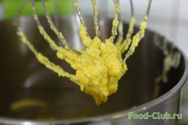2. Масло взбиваем с сахаром до кремообразной консистенции, при постоянном помешивании вводим в массу яйца и хорошо взбиваем.